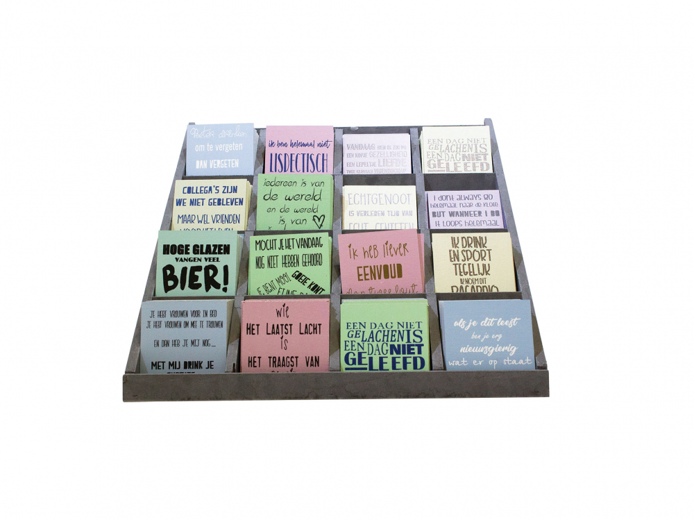 [productText] => De leukste onderzetters als cadeau voor jezelf een housewarming, bruiloft, verjaardag voor mannen, vrouwen, mama, papa, dochters en zonen. - Onderzetters met leuke teksten in het Nederlands - Houten onderzetters voor glazen op te zetten - Onderzetters van duurzaam hout - Gebruik het ook voor decoratie - Geef een origineel cadeau - Onderzetters het een quote - Praktisch in gebruik en makkelijk schoon te maken - Diameter 10x10 cm “Een dag niet gelachen is een dag niet geleefd”